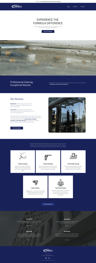 Formula Window Cleaning & Pressure Washing did not have an existing website or formal online presence. While the business was operating through referrals and word of mouth, potential customers had no central place to find information, verify credibility, or easily reach out for a quote.